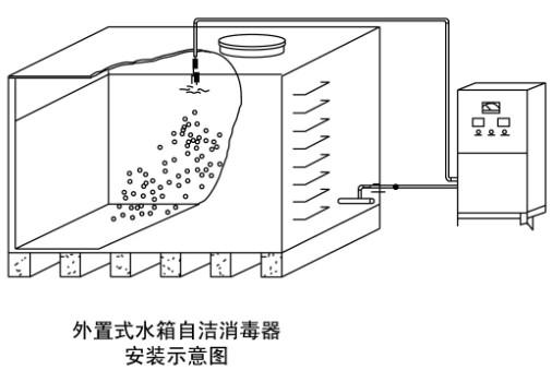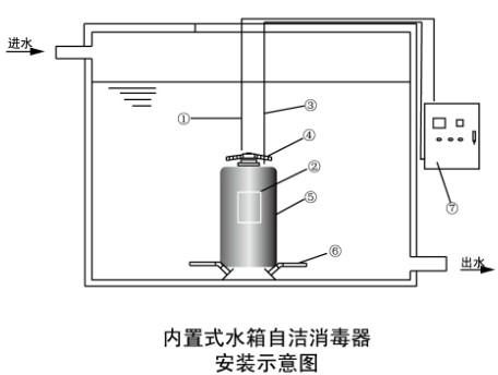 首先將自潔消毒器的循環(huán)水缸置于水箱的中下部,水箱的水循環(huán)均勻。當(dāng)水位達(dá)到液位計(jì)設(shè)定的高水位時(shí),電控柜開始啟動(dòng)高壓電源和潛水泵所產(chǎn)生的強(qiáng)氧化氣體經(jīng)管路,至曝氣部分;對(duì)水進(jìn)行曝氣消毒,同時(shí),潛水泵將經(jīng)過(guò)消毒的水送回水箱,使停滯的水循環(huán)起來(lái),如此循環(huán)下去,對(duì)水徹底的消毒。本產(chǎn)品出廠前,已將時(shí)間設(shè)定好,用戶無(wú)需再設(shè)定。