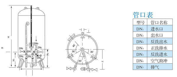除鐵錳過(guò)濾器過(guò)濾速度:7~10m/h(單層)、10~12m/h(雙層),不超過(guò)15m/h,進(jìn)水濁度:≤15mg/L;出水濁度:≤5mg/L工作溫度:常溫;工作壓力:≤0.6Mpa;反洗壓縮空氣量:18~25L/m2.S濾料層高:1000~1200mm反洗強(qiáng)度:15L/m2.S(單層)、12L/m2.S(雙層);反沖洗時(shí)間:4~6分鐘。